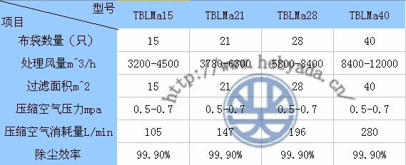TBLMaϵÁÐÂö³åʽ³ý³¾Æ÷Ö÷ÒªÊÖÒÕ²ÎÊý¼°ÐÔÄÜÖ¸±ê²ÎÊý±í